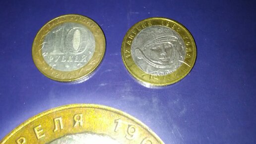 Первый космонавт на 10-ти рублёвых биметаллических монетах России. Поехали!