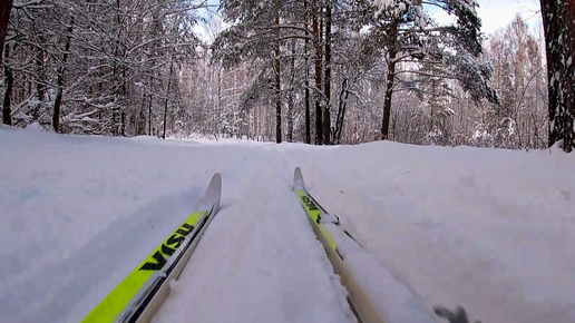Зимний лес. Лыжная тропа. Солнце и снег. Одиночный поход на лыжах.
