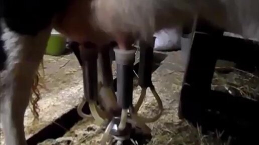 Аппаратное доение коровы после отёла.