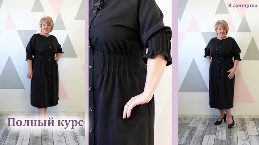 Стильное и элегантное платье с оригинальными защипами на талии. Полный пошаговый пошив от А до Я