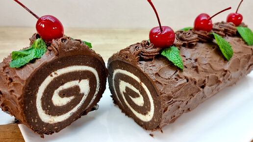 Шоколадный рулет с кремовой начинкой к чаю и не только: простые идеи десертов без выпечки #345