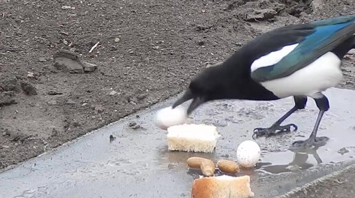 Сороки угощаются яйцами