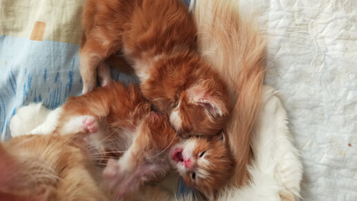 Первая драка у котят! А победила мама)