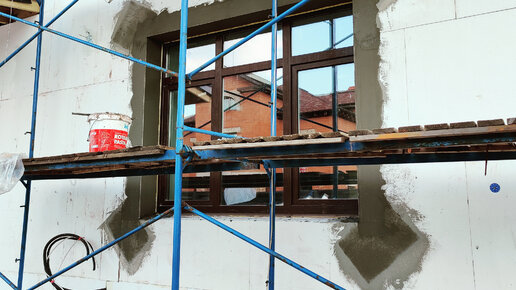 Армирование пенопластовых оконных откосов уголками с сеткой, втапливание уголков в клей, СФТК Мокрый Фасад