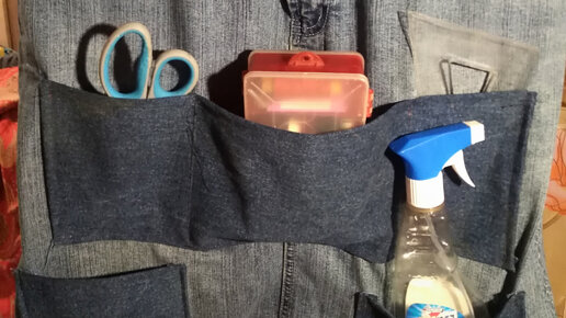 Фартук-сумка для огородника из старой джинсовой юбки