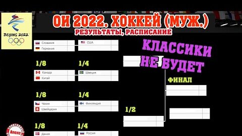 Без Чехии, США, Канады. Все пары ½. Хоккей. Олимпиада. Результаты 1_4. Расписание. Россия – Швеция