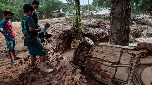 В затопленном Петрополисе людям пришлось спасаться из автобусов