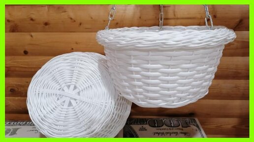 МК подвесное кашпо с ободком из прутика. Плетеное дно!