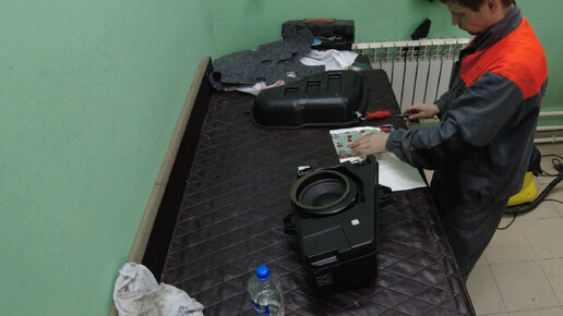 Шумоизоляция корпуса штатного сабвуфера автомобиля Kia Sorento Prime.