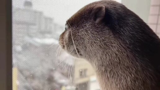 Выдра в первые видет снег! И несёт его в дом! Игривая выдра.