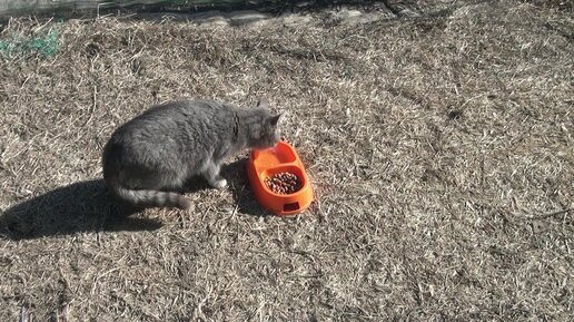 У кошачьей миски. Думали что кормим одну кошку, а оказалось...