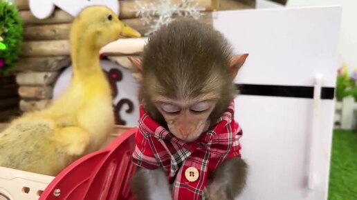 Малыш-обезьянка играет с домашними питомцами - милейшее зрелище