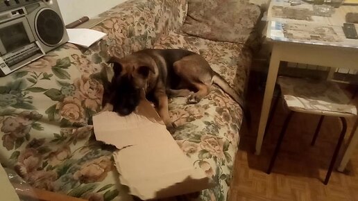Щенок 10 минут был без присмотра. Сразу же нашел чем заняться.)))
