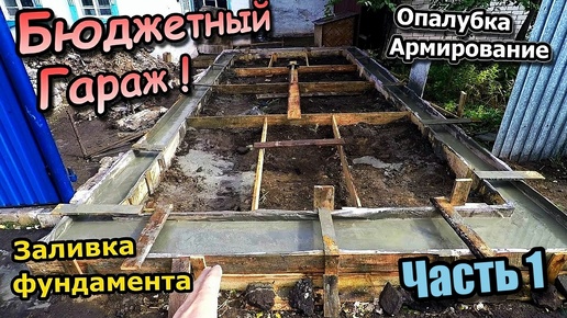 Бюджетный Гараж / Монтаж опалубки / Армирование / Заливка фундамента миксером / Часть 1 (осень 2020)