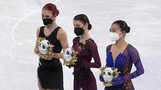 Награждение Анны Щербаковой, Александры Трусовой и Каори Сакамото