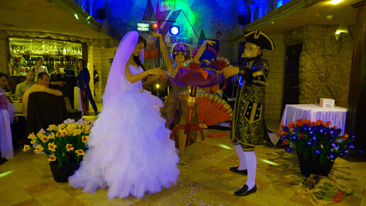 Яркое выступление фокусника с участием невесты...