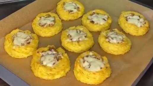 Картофельные гнезда с начинкой. Вкусный рецепт. Картофель с грибной начинкой.