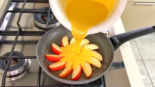Пирог с яблоками на сковороде. 1 минуту на тесто и время на выпечку