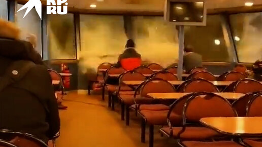 Пассажирский теплоход попал в шторм, страшное зрелище