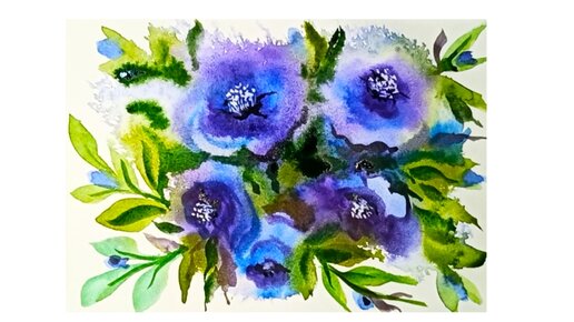 Темно синие цветы - акварельный этюд.