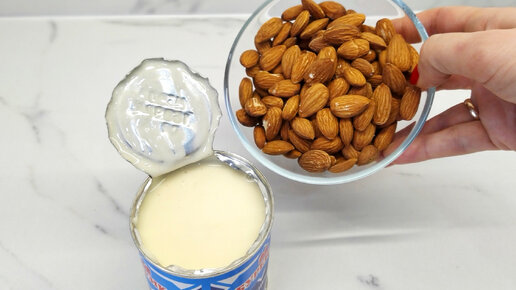Взбейте сгущенку с миндалем. Вы будете поражены - десерт за минуту, без выпечки