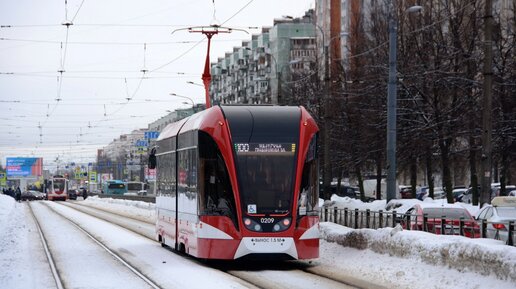Трамвай 100. Проспект Художников - метро "Гражданский проспект". Движение на скорости 10 км/ч.