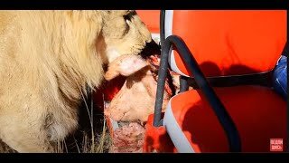 Лев с львицей вцепились в ОДИН КУСОК МЯСА! Мы среди десятка львов!