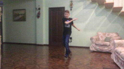 Евгений тренирует дома брейкинг фристайл.