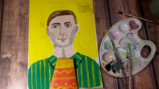 Как нарисовать портрет папы и сделать галстук из оригами