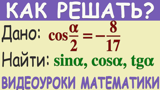 Как найти sinα, cosα, tgα, если cos α/2=-8/17, где sinα/2- положительное число. Тригонометрия 10...