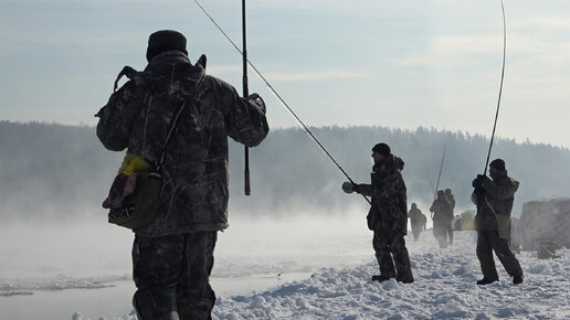 Рыбалка в Сибири в мороз голыми руками! Много рыбы и толпа её ловит