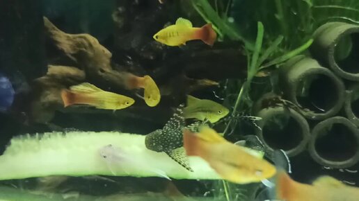 Поздний ужин у малышей номерных сомиков и многоцветных пецилий)