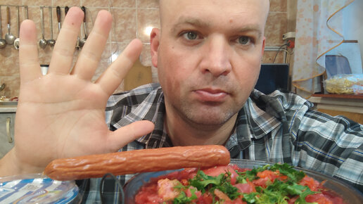 Мукбанг позавчерашний борщ и колбаска