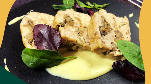 Мясной рулет фаршированный грибами с картофельным соусом. Рецепт шеф-повара