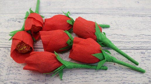 ЧУПА ЧУПС В РОЗОЧКЕ. Как сделать розу из гофрированной бумаги с чупа чупсом.