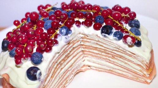 Торт на сковороде. Блинный торт с ягодами