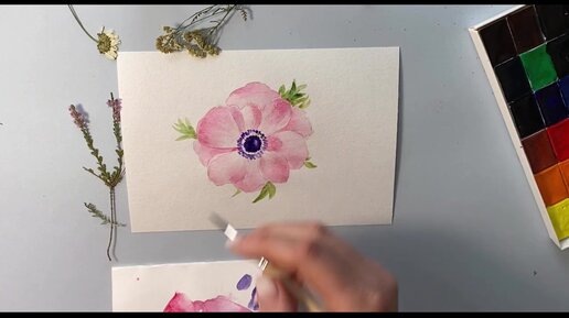 Рисуем цветок Анемон. Урок рисования акварелью для начинающих