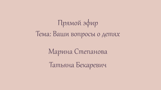 Эфир 13. Ваши вопросы о детях