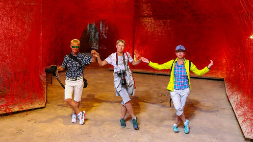 Красные линии от японской художницы. Кипр - инсталляция в пещерах + античный цирк