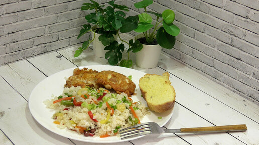 Ужин.Рис с овощами и рубленные куриные котлеты с сыром за 40 минут.