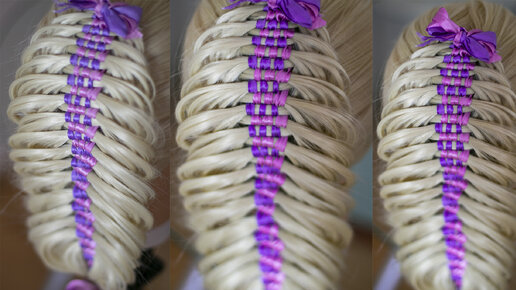 Коса с лентой. Многопрядная коса видео