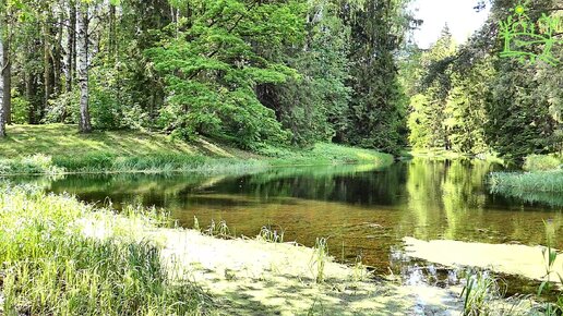 Живописный водоем в парке Мелодичное пение птиц Природный релакс
