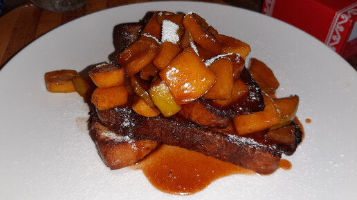 Дарим вторую жизнь черствому батону. Гренки с яблоками в карамельном соусе с корицей