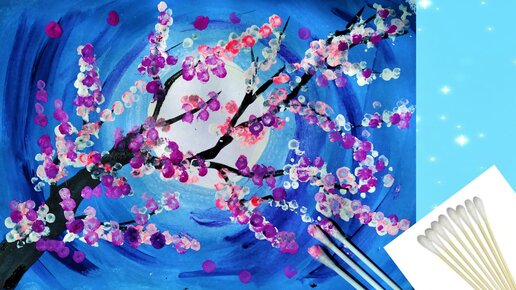 Вам понравится! Как ПРОСТО нарисовать весну, цветущую ветку за 10 минут ватными палочками.