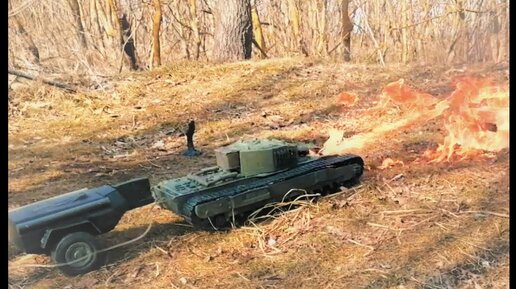 Tank Churchill огнеметный из пластилина против немецкого дота