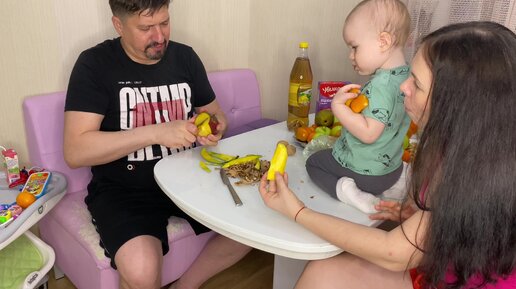 Накупили всяких фруктов для детей. МУЖ приготовил семейный ужин