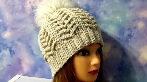 Шапочка, оригинальным узором, крючком. Шапочка для начинающих.