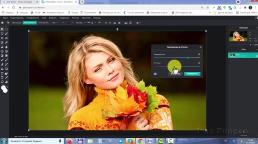 Цветовая температура в фотографии, корректируем ее. Корректируем сочность и оттенок в Pixlr Editor