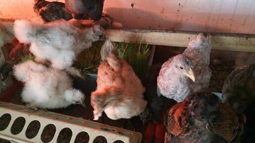 Подросшие цыплята.