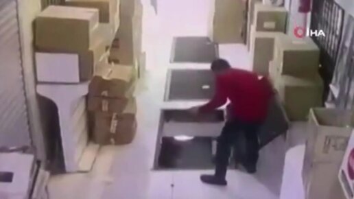 Мужчина не заметил люк в полу и провалился. Он мог бы разбиться, но чудом остался цел
